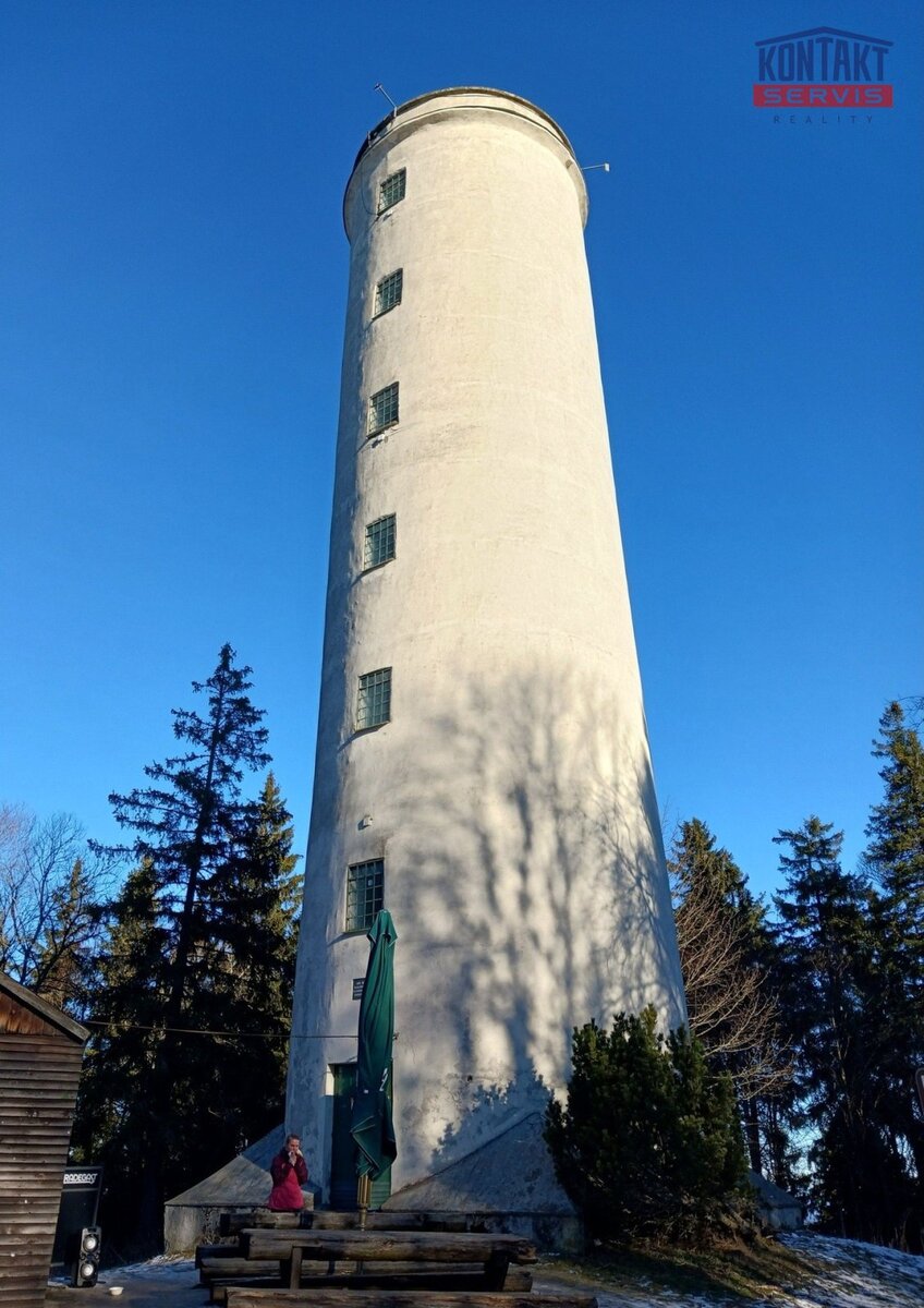 1,5 km vzdálená kamenná rozhledna Libín postavena roku 1883