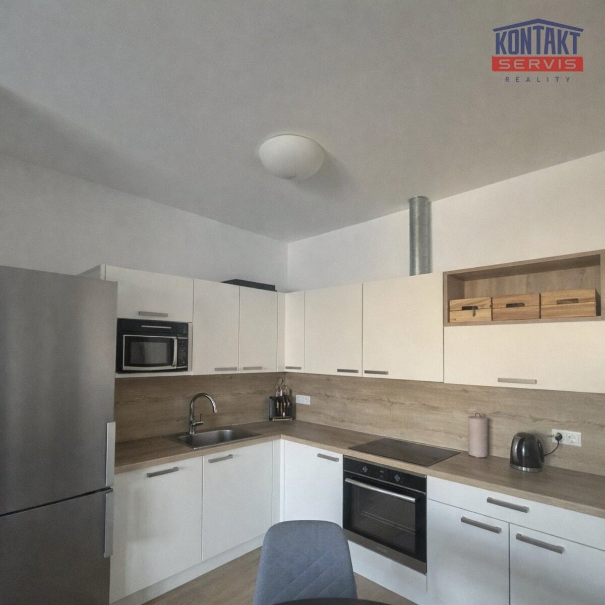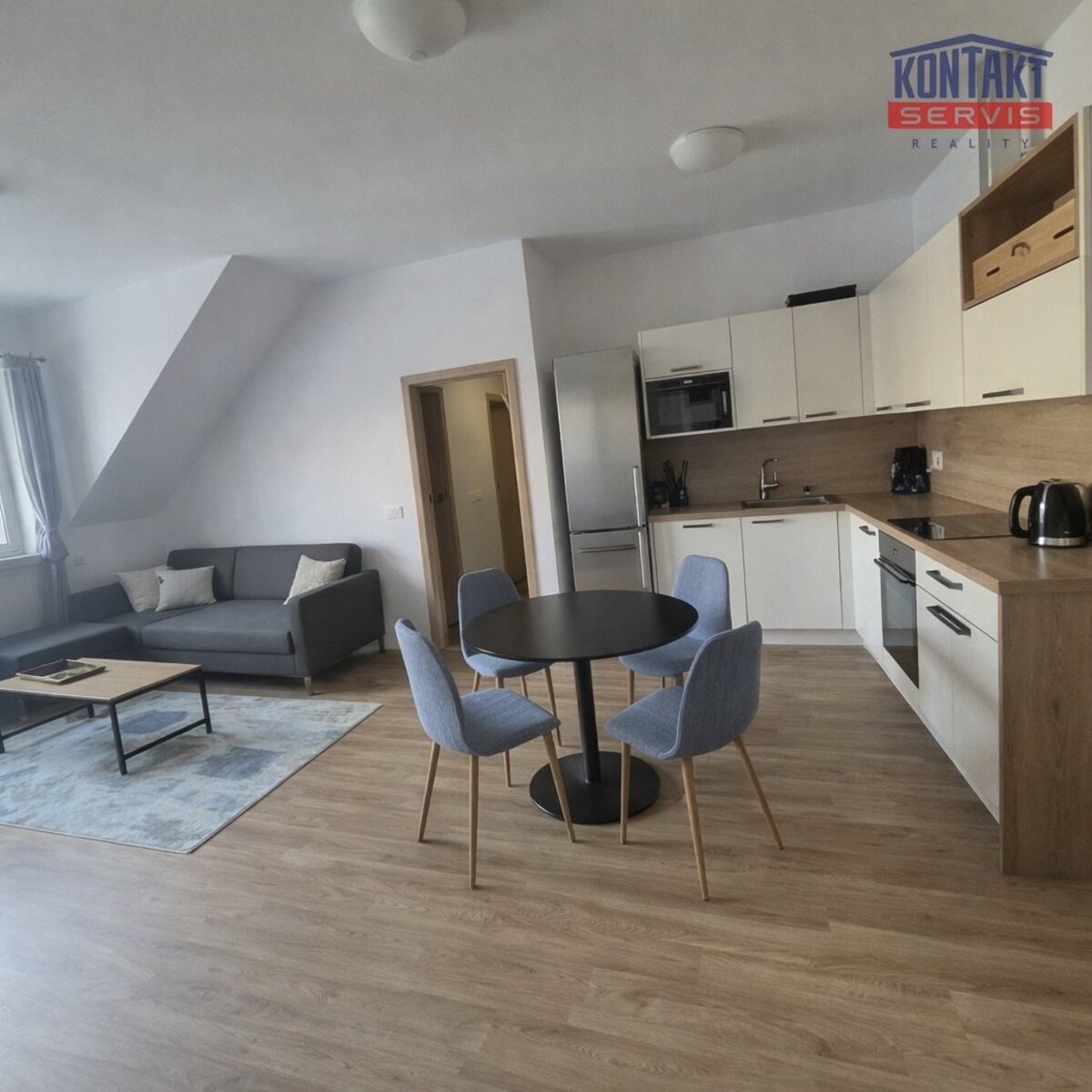 obývací místnost s kuchyňskou linkou (30 m2), která je vybavena